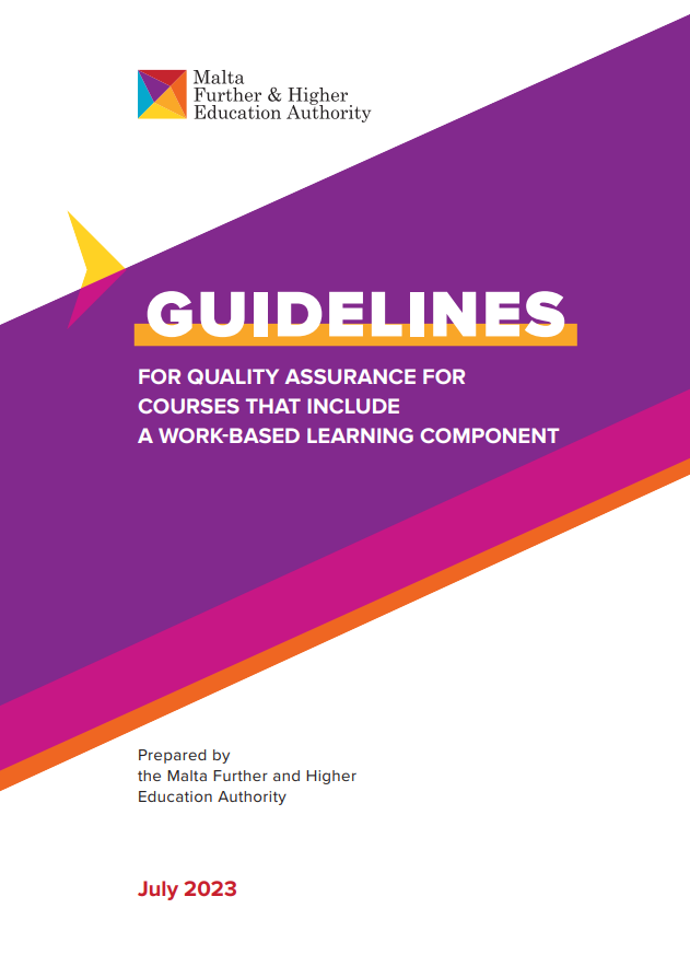 - Booklet: Definitions, Principles and Guidelines for QA in Work Based Learning (A publication in EN and MT, print and digital) Call for Expression of Interest for two experts with experience in Quality Assurance in Vocational Education and Training to develop Definitions, Principles and Guidelines for Quality Assurance in Work-Based Learning – Link (March 2023)